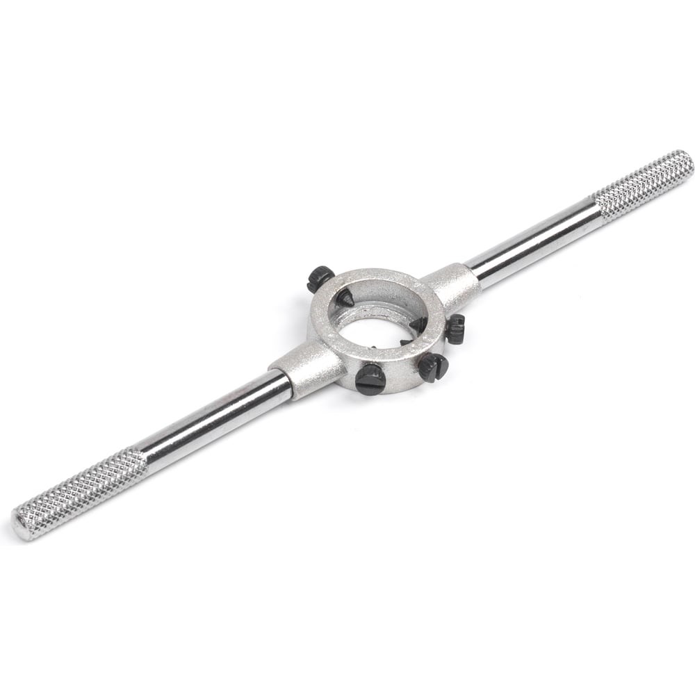 Плашкодержатель HORTZ 20х7 М3-М6 351976 надежно удерживает инструмент для нарезания наружной резьбы. Благодаря рифленым рукояткам вращать держатель проще. Центральное отверстие имеет оптимальный размер, который позволяет расположить плашку одного размера без перекоса и погрешности.