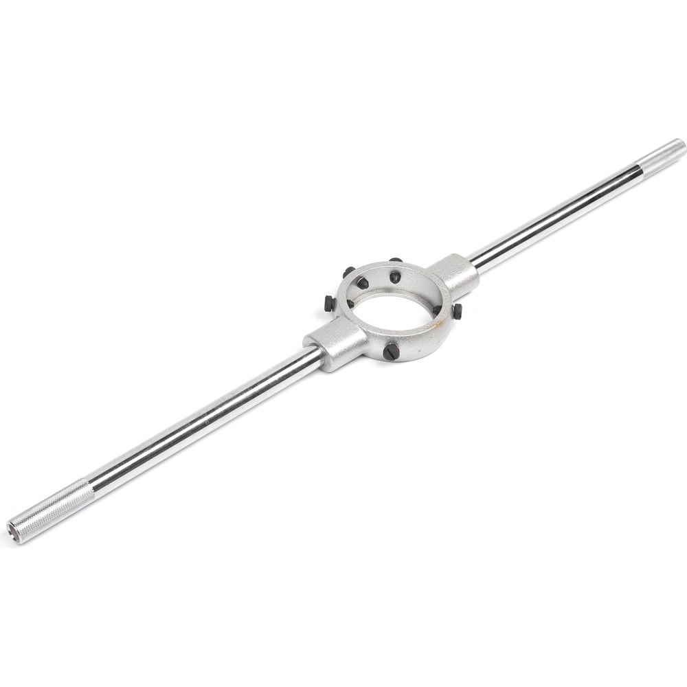 Плашкодержатель HORTZ 65х25 М27-М36; G, K, RС 1; G 7/8 351982 надежно удерживает инструмент для нарезания наружной резьбы. Благодаря рифленым рукояткам вращать держатель проще. Центральное отверстие имеет оптимальный размер, который позволяет расположить плашку одного размера без перекоса и погрешности.