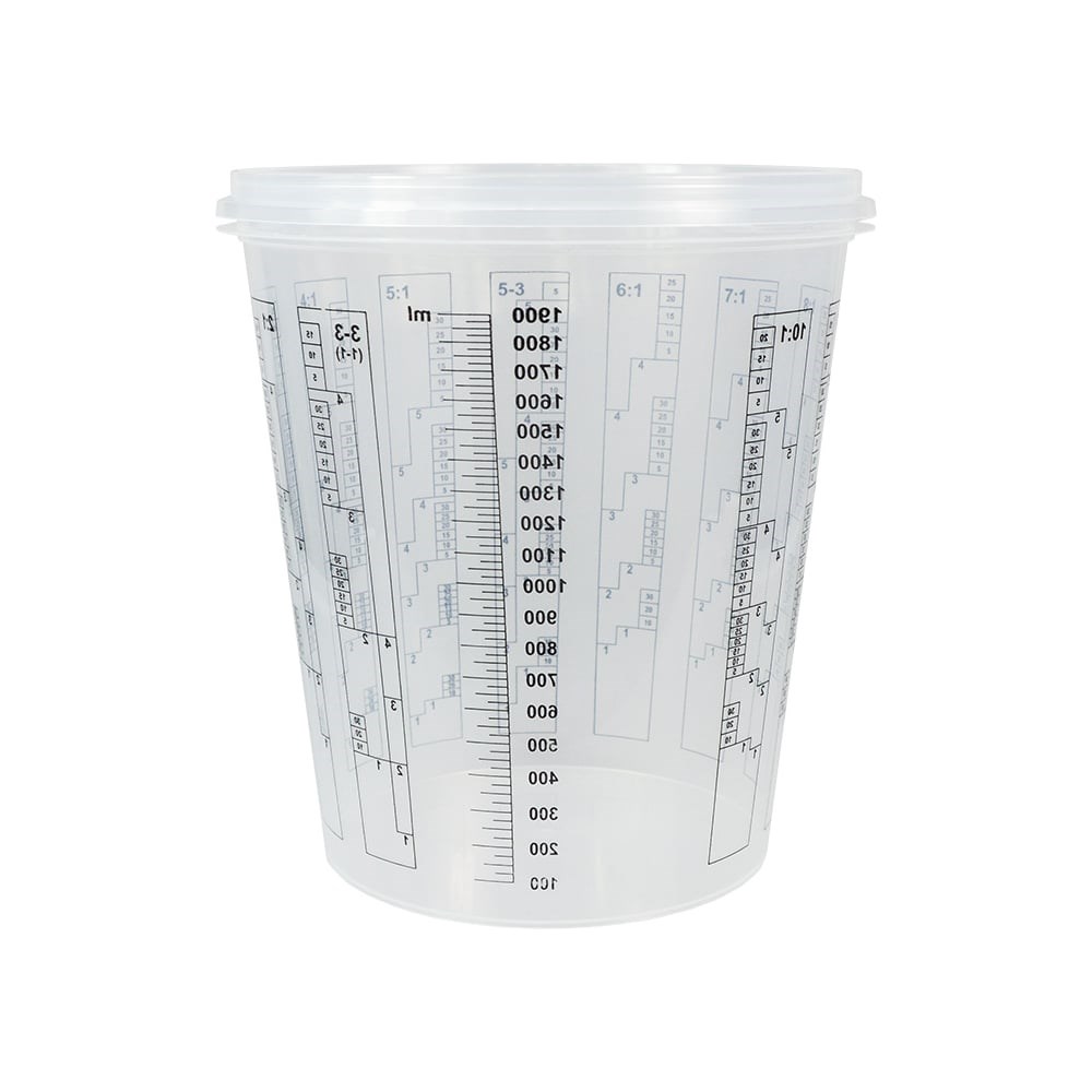 Пластиковая емкость пластиковая для смешивания красок WOLF 2,3л, 100 шт. 1.4021.2300 используется для смешивания лакокрасочных материалов в различных соотношениях с отвердителями и разбавителями. Емкости изготавливаются на современном промышленном оборудовании и отличаются высоким качеством как самого пластика, так и его литья, а также чистой поверхностью без следов смазки, четкостью и прочностью печати графической информации. На емкости нанесена высококачественная градуировка, позволяющая смешивать материалы в объёмном соотношении 2:1, 3:1, 4:1, 5:1, 6:1, 7:1, 10:1, а также общая шкала. Внимание! Крышки приобретаются отдельно! Артикул WOLF 1.4022.2301 - Крышка для емкости 2,3 л.