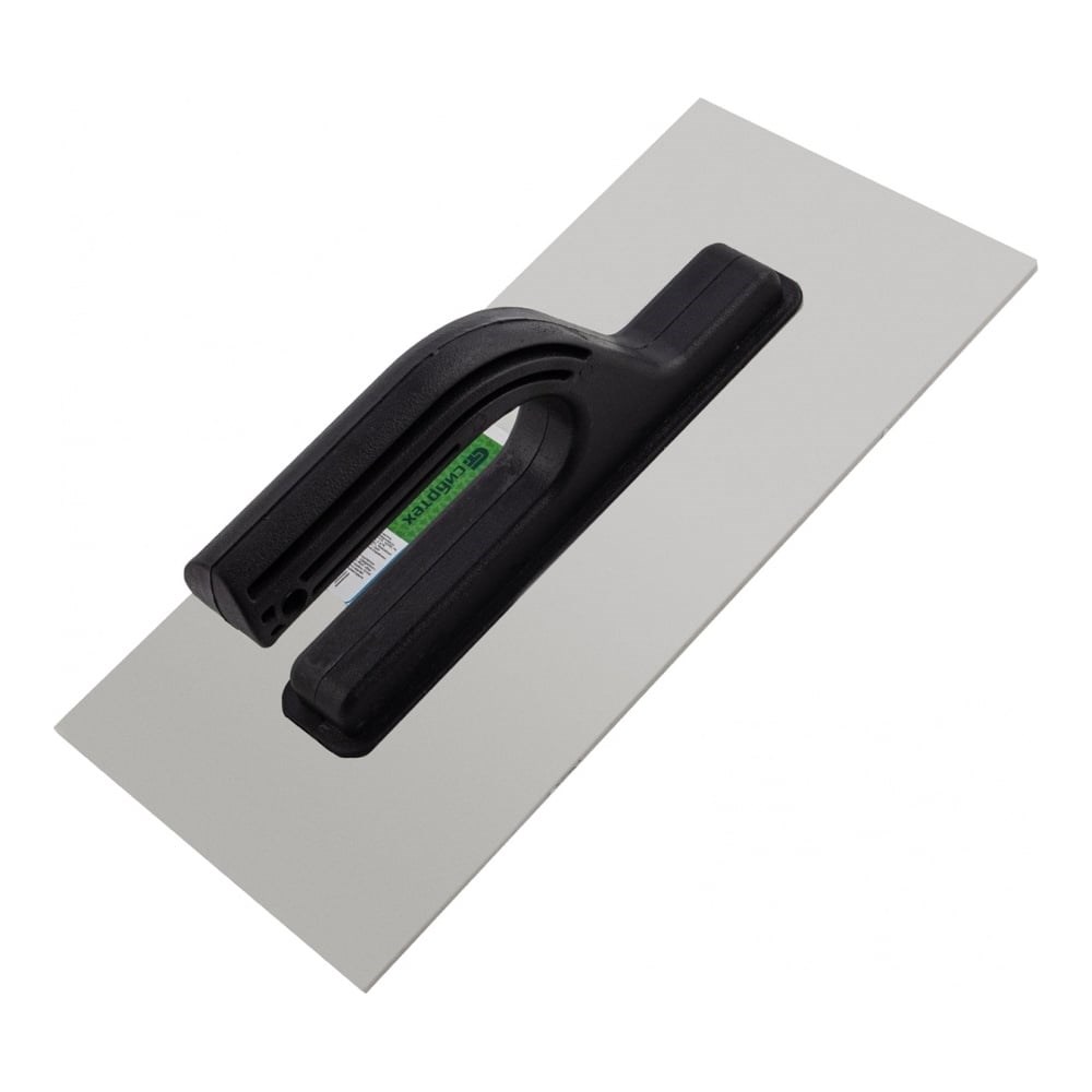 Пластиковая гладилка СИБРТЕХ 280 х 130 мм 86711 применяется для нанесения и распределения декоративных строительных смесей, жидких обоев и других растворов. Обеспечивает равномерное нанесение и распределение различных смесей. Оснащена удобной наклонной рукояткой для надежного удержания инструмента.