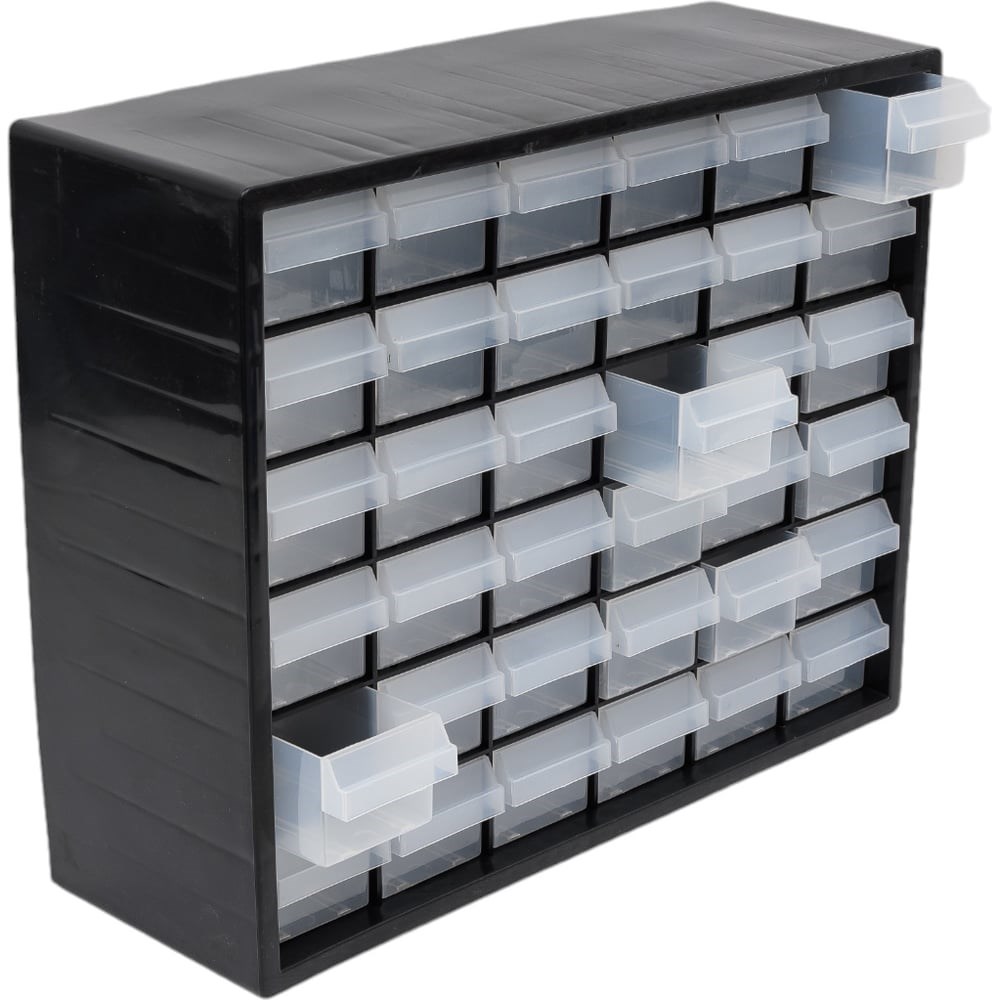 Органайзер-полка имеет 6 ячеек по вертикали и 6 по горизонтали с 36-ю прямоугольными вместительными контейнерами прозрачного цвета. Данный органайзер можно использовать в качестве полки для хранения любых мелочей, бисер, бусы, стразы, пуговицы, бытовые и строительные мелочи, инструменты и рыболовные принадлежности, очень удобно для розничных магазинов. Ячейки свободно выдвигаются в обе стороны, не упираются в выступы в полностью задвинутом состоянии.