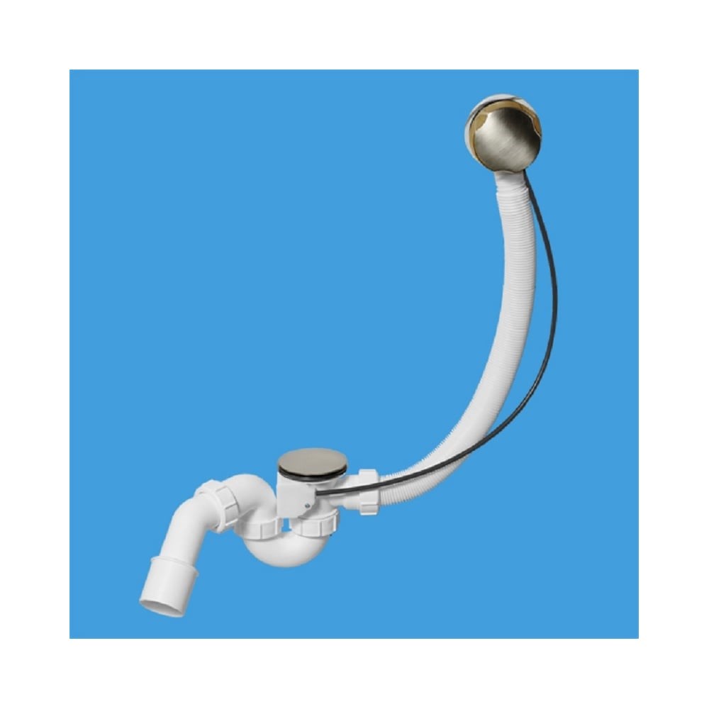 Слив-перелив McAlpine полуавтомат, пластиковый, с коленом, Lтросика=575 мм., никель/сатин MRB2SN-PB