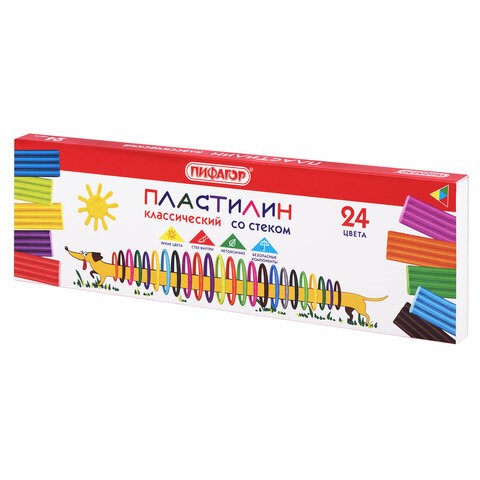 Пластилин классический ПИФАГОР "Веселая такса", 24 цвета, 360 г, СО СТЕКОМ, 106676