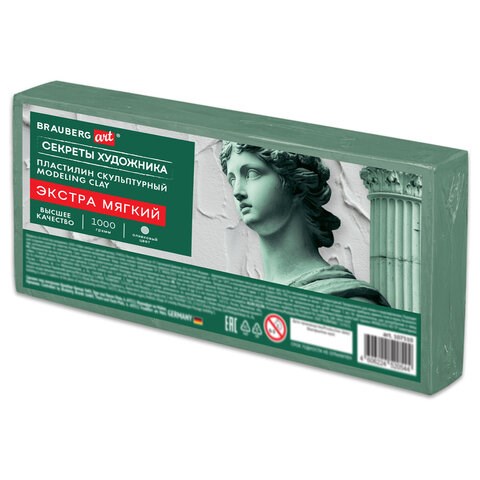 Пластилин скульптурный ЭКСТРА МЯГКИЙ ОЛИВКОВЫЙ "Секреты художника", 1 кг, BRAUBERG ART, 107510