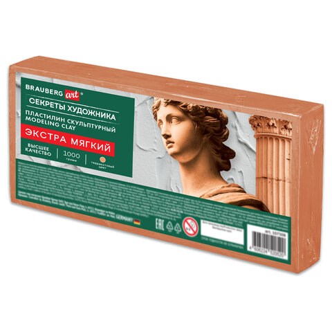 Пластилин скульптурный ЭКСТРА МЯГКИЙ ТЕРРАКОТОВЫЙ "Секреты художника", 1 кг, BRAUBERG ART, 107508