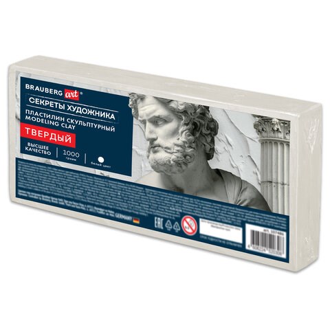 Пластилин скульптурный ТВЕРДЫЙ БЕЛЫЙ "Секреты художника", 1 кг, BRAUBERG ART, 107486