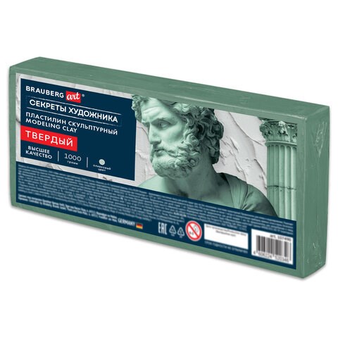 Пластилин скульптурный ТВЕРДЫЙ ОЛИВКОВЫЙ "Секреты художника", 1 кг, BRAUBERG ART, 107490