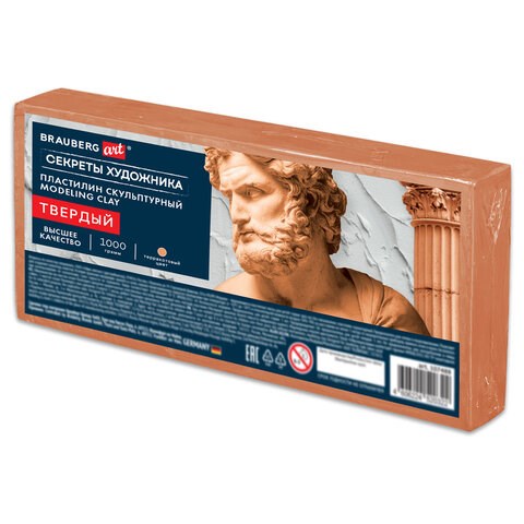Пластилин скульптурный ТВЕРДЫЙ ТЕРРАКОТОВЫЙ "Секреты художника", 1 кг, BRAUBERG ART, 107488