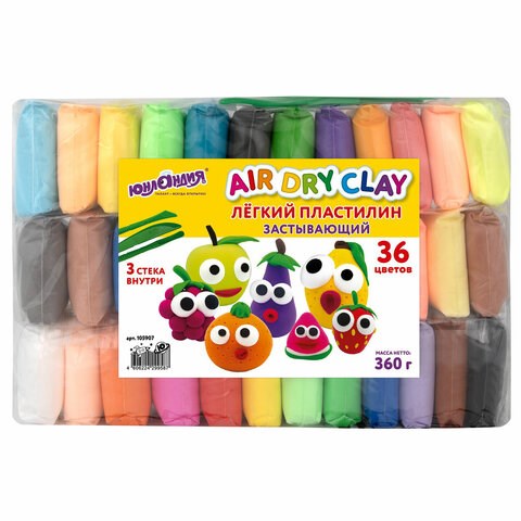 Пластилин супер легкий воздушный застывающий 36 цветов, 360 г, 3 стека, ЮНЛАНДИЯ, 105907