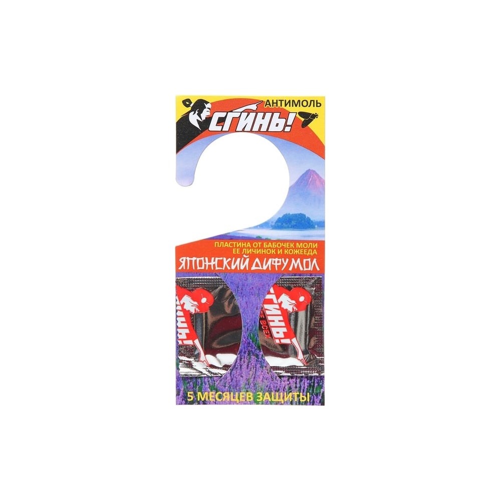 Пластина от моли СГИНЬ! Японский дифумол 1 шт., крючок 22005 - универсальное средство для защиты шерсти, меха и изделий из них от повреждения молью, ее личинками и кожеедом. Извлеките пластину из пакетика, разместите в держателе и поместите в шкаф из расчета 1 пластина на 0,5 куб. м. Безопасно для детей и домашних животных. Пять месяцев защиты!