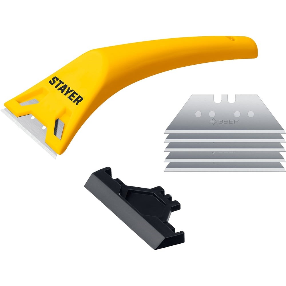 STAYER 60 мм, 5 доп. лезвий, компактный скребок 0851-H6_z02 применяется для зачистки поверхностей от различных загрязнений. Легкий и прочный инструмент в компактном пластиковом корпусе. Защитный чехол-скребок для зачистки деликатных поверхностей в комплекте.Отличается простотой эксплуатации и долгим сроком службы.