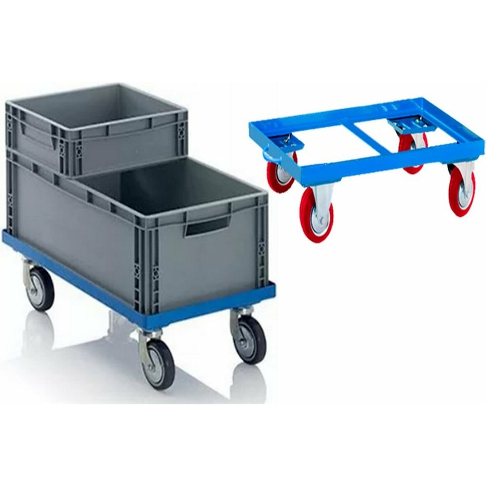 Платформенная каркасная стальная тележка МосТележка 420x620 ТПКС-6242 идеально подходит для комфортного перемещения евро-контейнеров, штабелированных пластиковых ящиков, коробов или лотков. Каркас – сварная конструкция из стального уголка.Пластиковые ящики (Евробоксы) не входят в комплект тележки.