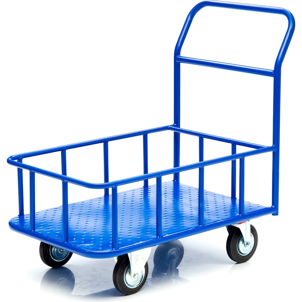 Тележка Стелла-техник платформенная, с бортом, 600х900мм, КПБ-300-125-И предназначена для быстрой и удобной транспортировки грузов на складе, вокзале или в цехе. Габариты изделия и поворотные колеса обуславливают высокую маневренность, а удобная ручка позволяет легко управлять данным средством. Борта тележки помогают предотвратить самопроизвольное соскальзывание груза, что обеспечивает надежность перевозки хрупкого груза. Тележка комплектуется прочными и долговечными колесами ведущего итальянского производителя Tellure Rota. Материал колес - резина.