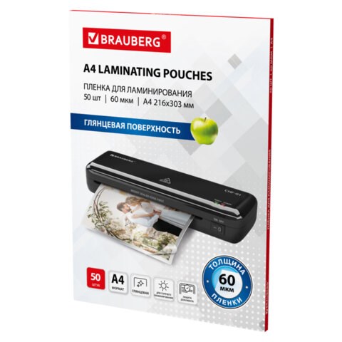 Пленки-заготовки для ламинирования А4, КОМПЛЕКТ 50 шт., 60 мкм, BRAUBERG, 533111