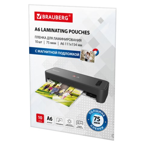 Пленки-заготовки для ламинирования, МАГНИТ ДЛЯ ФОТО, 111х154 мм, А6, КОМПЛЕКТ 10 шт., 75 мкм, BRAUBERG, 533121