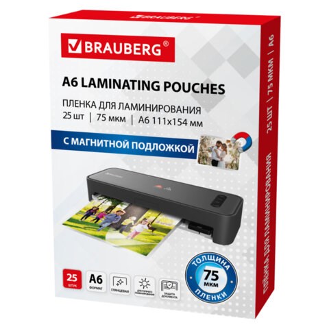 Пленки-заготовки для ламинирования, МАГНИТ ДЛЯ ФОТО, 111х154 мм, А6, КОМПЛЕКТ 25 шт., 75 мкм, BRAUBERG, 533120