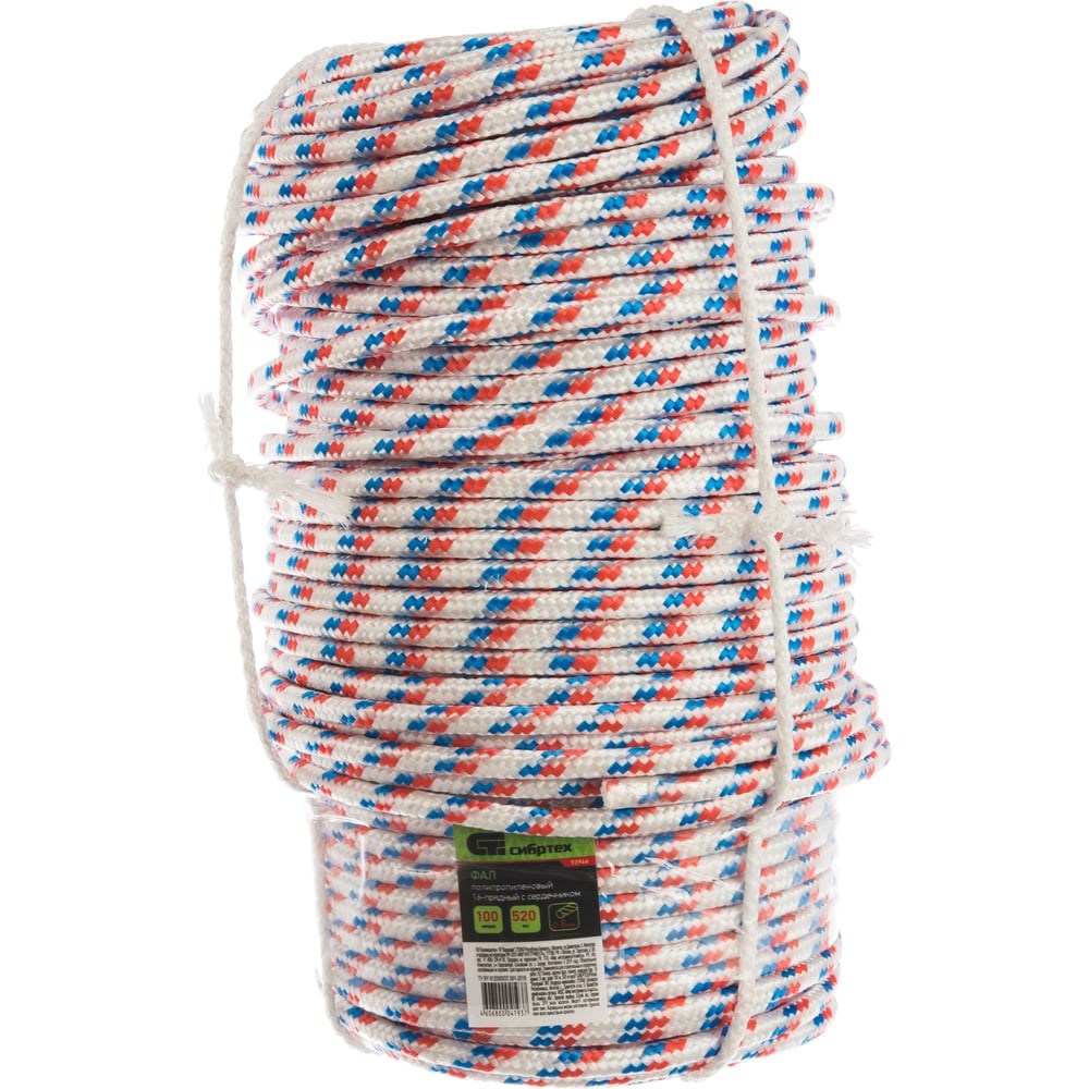 Плетеный полипропиленовый фал Сибртех 93966, 16-прядный, с сердечником, диаметром 8 мм и длиной 100 м, позволяет поднимать, перемещать и закреплять различные предметы. Полипропиленовый сердечник увеличивает его прочность и упругость. Фал используется в туризме, рыболовстве, на производстве и в промышленности, в том числе нефтяной, а также в строительстве и сельском хозяйстве.