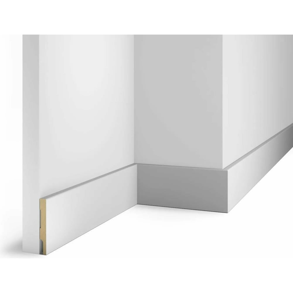 Плинтус COSCA DECOR AP72 под покраску, белый, 75x10x2400 мм, МДФ СПБ098260 производится из высококачественного МДФ (древесное волокно с добавлением лигнина и парафина) и облицовывается финиш-пленкой, защищающей его от внешних воздействий и служащей основой для последующей чистовой окраски. Технология производства плит MDF улучшает свойства простого дерева, такие как влагостойкость, однородная прочная структуру, не коробится. Покрытие - высококачественная бумага с защитным слоем лака, который обеспечивает адгезию основы к ЛКМ. Плинтусы можно окрашивать в любые цвета, любыми видами красок, они легко монтируются при помощи клея, саморезов или монтажной планки. Благодаря универсальному дизайну, изделия подходят для любых типов интерьеров.