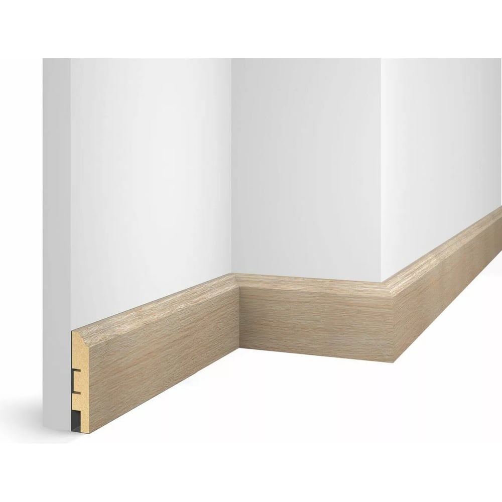 Плинтус COSCA DECOR WP07 экошпон, ясень Тирамису, 80x16x2400 мм, МДФ СПБ103652 выполнен из MDF (древесное волокно с добавлением лигнина и парафина) с декоративным покрытием экошпон. Технология производства плит MDF улучшает свойства простого дерева, такие как влагостойкость, однородная прочная структуру, не коробится. Особенности производства покрытия, позволили создавать тиснение, которое максимально приближено к натуральному шпону, с визуальными и тактильными ощущениями близкими к натуральной древесине. В составе покрытия многослойная, высококачественная бумага, сочетающая от четырех до шести цветовых оттенков в одном декоре, что дает ощущение перелива и мягкости цвета. Верхний слой покрытия - защитный лак, нанесенный по технологии электронно-лучевого отверждения, что обеспечивают высокую эксплуатационную устойчивость декоративного покрытия.