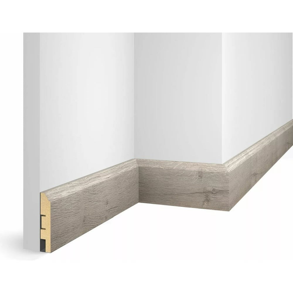 Плинтус COSCA DECOR WP07 экошпон, дуб бархатный, 80x16x2400 мм, МДФ СПБ103726 выполнен из MDF (древесное волокно с добавлением лигнина и парафина) с декоративным покрытием экошпон. Технология производства плит MDF улучшает свойства простого дерева, такие как влагостойкость, однородная прочная структуру, не коробится. Особенности производства покрытия, позволили создавать тиснение, которое максимально приближено к натуральному шпону, с визуальными и тактильными ощущениями близкими к натуральной древесине. В составе покрытия многослойная, высококачественная бумага, сочетающая от четырех до шести цветовых оттенков в одном декоре, что дает ощущение перелива и мягкости цвета. Верхний слой покрытия - защитный лак, нанесенный по технологии электронно-лучевого отверждения, что обеспечивают высокую эксплуатационную устойчивость декоративного покрытия.
