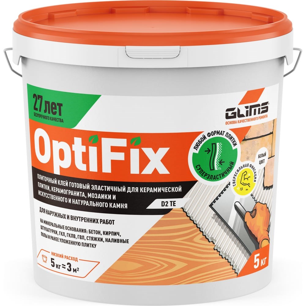 Плиточный клей GLIMS OptiFix класс D2, 5 кг О00012012 представляет собой высокоэластичный дисперсионный состав, который полностью готов к применению. Продукт используется для облицовочных работ любыми видами керамики, натуральным и искусственным камнем, мозаикой, тонким керамическим гранитом. Рекомендуется для выполнения облицовки бассейнов и фонтанов, каминов. Для внешних и внутренних работ.