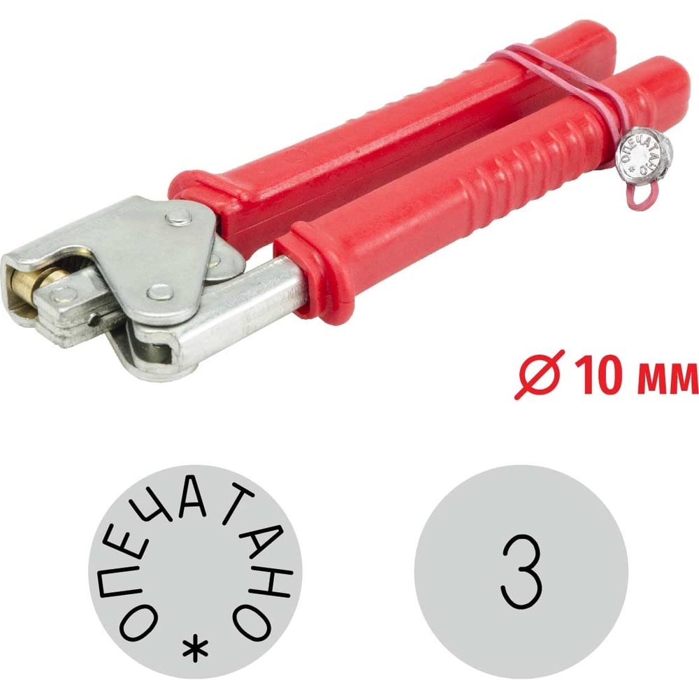 Устройство применяется для опечатывания помещений, замков, приборов и т.д.. Подходит для использования со свинцовыми и пластиковыми пломбами. Уже имеет гравировку на обеих пластинах: Слово ОПЕЧАТАНО Номер 3 При необходимости можно приобрести несколько пломбираторов с различающимися номерами для разных сотрудников или отделов предприятия. В комплект входит только номерной пломбиратор с гравировкой на обеих плашках. Для того, чтобы установить пломбу, необходимо: Обвязать нужное место проволокой и протянуть её концы в отверстия пломбы, выведя их с обратной стороны Пломбу поместить между плашками пломбиратора и с максимальным усилием сжать его ручки. Пломба должна сплющиться, зажав проволоку * Если пломба установлена правильно, извлечь из неё проволоку без усилия или разрушения самой пломбы невозможно