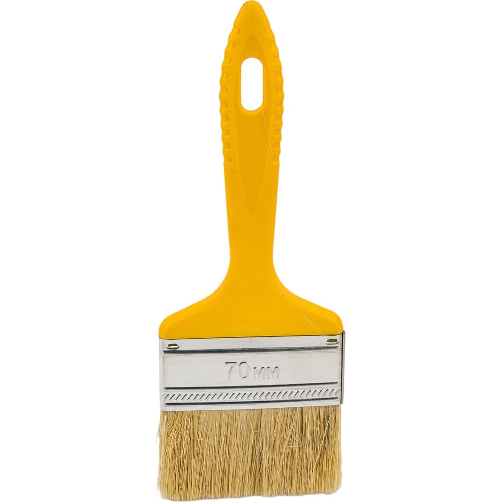 Плоская кисть применяется для нанесения красок, эмалей, лаков и других лакокрасочных материалов на различные поверхности. Пластиковая рукоятка оснащена отверстием для подвеса, что обеспечивает удобное хранение. Качественная натуральная щетина способствует равномерному нанесению материала на поверхность и отличается высокой укрывистостью.