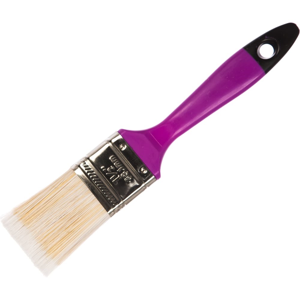 Кисть подходит для работы со всеми лакокрасочными материалами, применяется для окрашивания различных поверхностей. Ширина: 38 мм; Материал ворса: синтетический; Материал ручки: пластик; Обойма: металлическая никелированная; Отверстие для подвешивания: есть; Тип: плоская. Плоская кисть с пластиковой ручкой поможет без труда провести малярные работы. Долго держит свою форму. Имеет синтетическую щетину шириной 38 мм, которая обладает хорошими краскообменными свойствами и отлично удерживает лакокрасочный материал и равномерно распределяет краску по поверхности. Отверстие на конце кисти позволит повесить её на стену или специальный держатель после окончания малярных работ. Преимущества: - Удобство эксплуатации; - Равномерное окрашивание; - Долговечность; - Надежность.