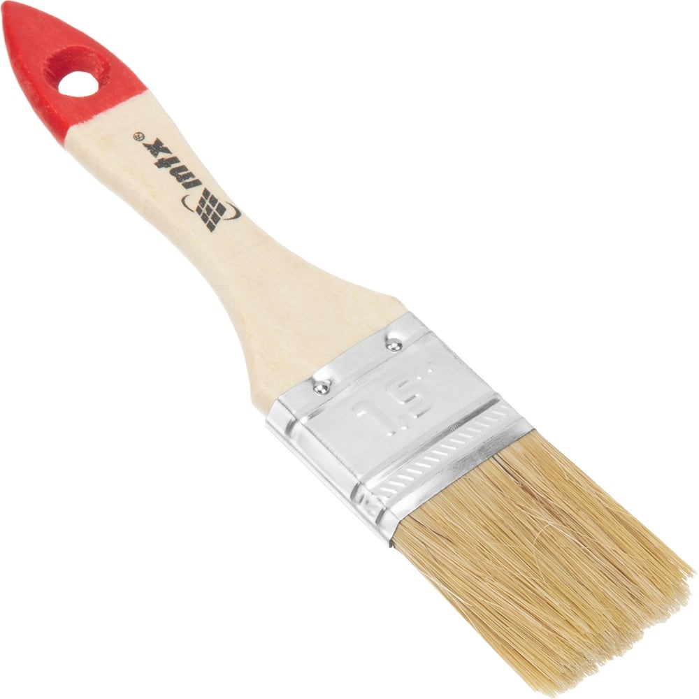 Плоская кисть MTX «Стандарт» 82525 шириной 1,5 дюйма (38 мм), с натуральной щетиной и деревянной ручкой, — инструмент для проведения бытовых малярных работ. Натуральная светлая щетина обладает высокой износоустойчивостью и подходит для нанесения красок на основе растворителей. За счет ширины 38 мм кисть подходит для окрашивания узких поверхностей, например, плинтусов и рам.