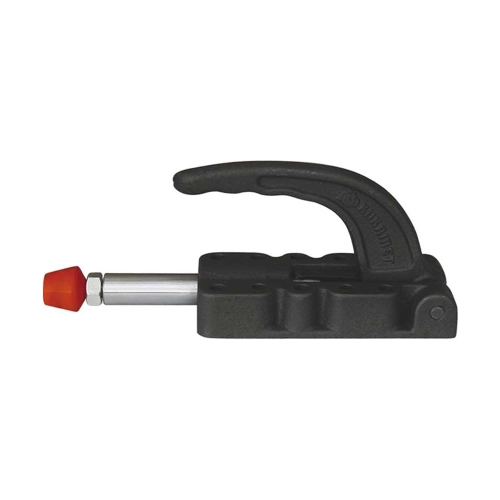 Материалы:Основание и рукоятка литые из прочного чугуна GGG-60.Толкающая штанга и нажимной винт из стали.Упор из силикона.Исполнение:Чугун покрыт электростатической порошковой краской черного цвета.Основание, рукоятка и детали механизма фосфатированные.Толкающая штанга хромированная.Сталь оцинкованная.Ход плунжера: 38 мм.Нажимной винт: M8x50.F1 зажимное усилие: 7000 Н.F3 крепежная сила: 11000 Н.Fi усилие от руки (F1:Fi): 16:1.L4 min.: 23 мм.L4 max.: 58 мм