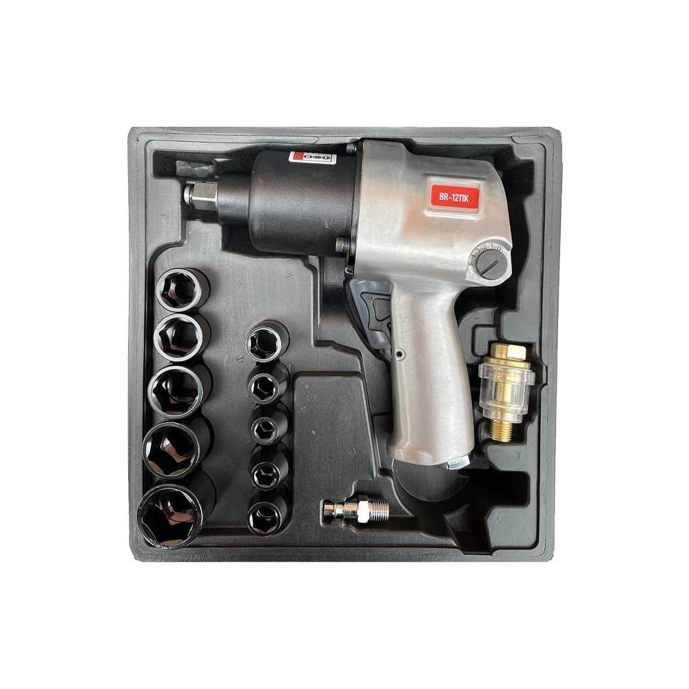 Гайковерт пневматический BYAROSS в кейсе, с набором головок 10/11/13/14/17/19/22/24 мм, удлинителем BR-1211К