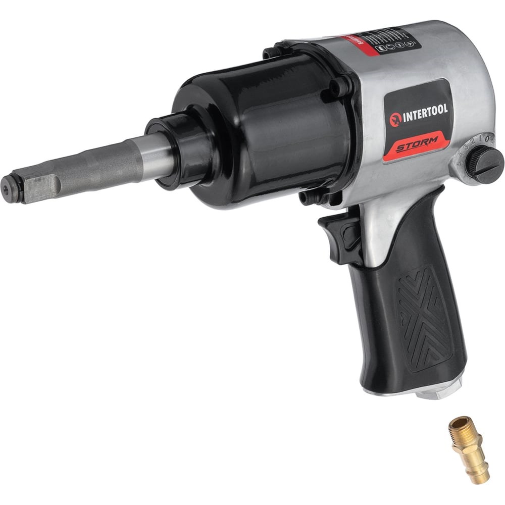 Пневматический гайковерт INTERTOOL PT-1103 предназначен для слесарно-монтажных работ с крепежом различного профиля. Он имеет ряд преимуществ, а именно: регулятор мощности крутящего момента, эргономичный дизайн, удлиненный шпиндель позволяющий работать в труднодоступных местах, высокий показатель мощности и прочие технические характеристики который обеспечивают легкость выполнения самых сложных задач. Размер квадрата хвостовика шпинделя на данной модели составляет 1/2", средний расход воздуха 230 л/мин. Скорость вращения составляет 7500 об/мин, а максимальное усилие – 576 Нм. Рабочее давление может достигать 6 атмосфер. Рукоятка прибора прорезинена, – с ним удобно и безопасно работать.