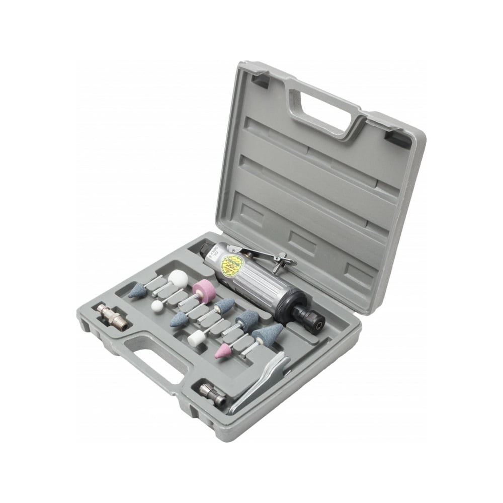 Пневмодрель ТЕМП AB-10 поставляется с набором оснастки, что позволяет мгновенно приступить к работе. Высокая скорость вращения шпинделя позволяет легко зачищать края деталей. Широкая клавиша "Пуск" способствует комфортной работе.