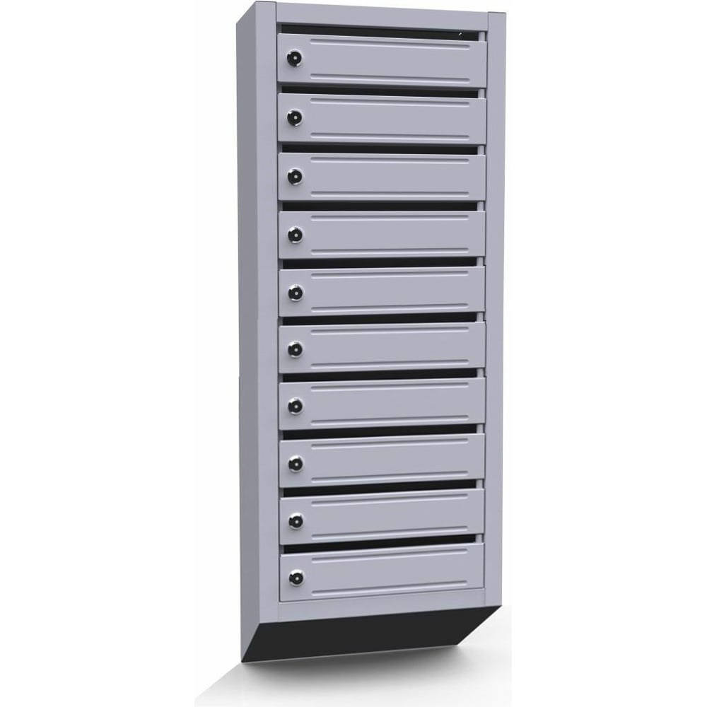 Наша торговая площадка предлагает купить почтовый ящик щелевой на 10 ячеек для многоэтажных домов. Данный тип товара относится к малоформатной металлической мебели общественного пользования. Производится в РФ. Цена абонентского ящика для корреспонденции всегда оптимальная. Товар надежно упакуют и оперативно отправят заказчику.Блоки одной серии соединяют между собой, создавая единый массив. Компоновка – вертикальная. Для обозначения номера квартиры используется трафаретная печать. Работник почты загружает рассылку через щели в створках.Особенности многосекционных почтовых блоков для подъездаДля установки в подъезде можно купить дешевые почтовые ящики или же заказать изделия премиум-класса. Святогор ЯПР-10 относится к бюджетным моделям, однако, при этом, он обладает классическим дизайном и демонстрирует хорошие антивандальные показатели.Габаритные размеры, мм - 377×1015×190 (ширина/высота/глубина);Конструкция из листовой стали 0,6 мм;Распашные дверцы с выштамповкой ребер жесткости;Антикоррозионное полимерно-порошковое покрытие;Цвет серый - RAL 7035;Изделие индифферентно к повышенной влажности и перепадом температур;Крепится к стене подъезда;Отвечает санитарно-гигиеническим требованиям;Гарантия -12 месяцев.При соблюдении правил эксплуатации почтовый ящик из металла прослужит не менее 10 лет.Внимание! Почтовый ящик поставляется без задней стенки.Ящик укомплектован замками.Замки не установлены, у каждого замка 2 ключа.