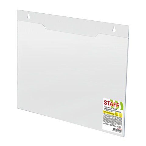 Подставка настенная для рекламных материалов ГОРИЗОНТАЛЬНАЯ (297х210 мм), А4, ПЭТ, STAFF, 291399