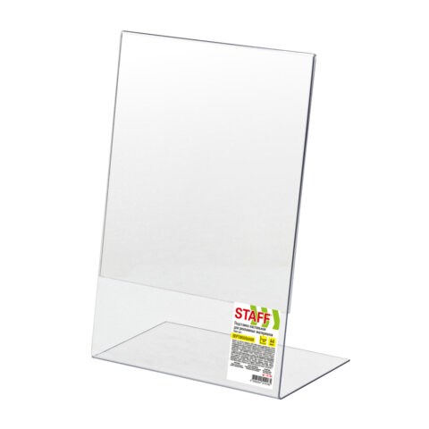 Изготовлена из прочного прозрачного ПЭТ. Предназначена для настольного размещения. Формат А4 и меньше. Максимальная высота вставляемого листа - 297 мм, максимальная ширина вставляемого листа - 210 мм.