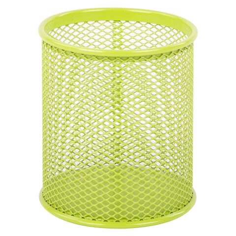 Изготовлена из металлической сетки. Имеет размеры 100х89х89 мм. Состоит из одного отделения. Мягкие подушечки на дне предотвращают скольжение и порчу мебели. Поставляется без канцелярского наполнения.