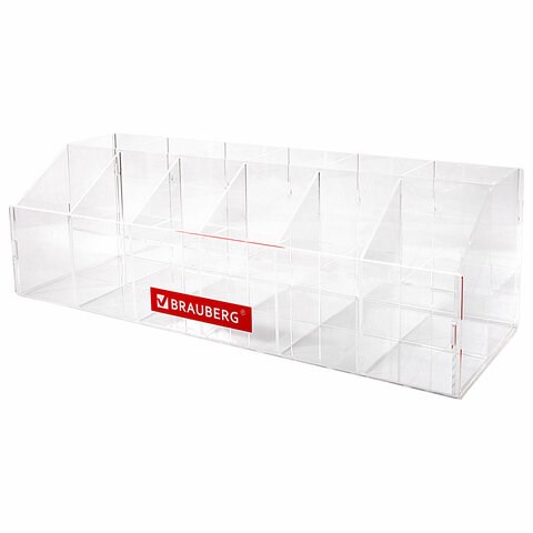 Подставка под письменные принадлежности BRAUBERG, 12 отделений, 15х47х16 см, оргстекло, 505924