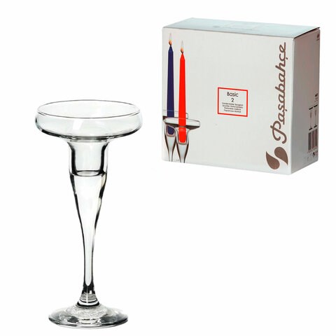 Подсвечник, 170 мм, КОМПЛЕКТ 2 штуки, стекло, PASABAHCE "БЕЙЗИК", фирменная подарочная упаковка, 44021