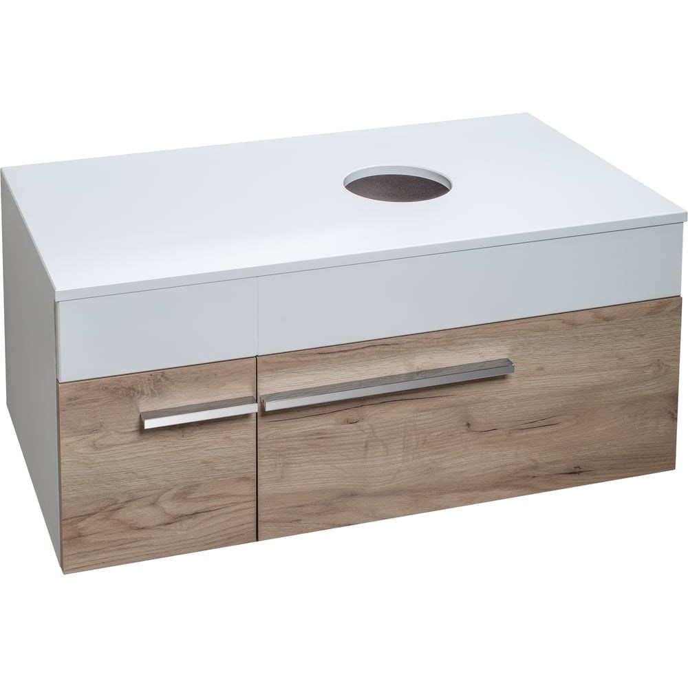 Тумба под раковину Вудлайн (подвесная) - выполнена в ультрасовременном дизайне в цвете крафтовый дуб. Тумба в ванную имеет выдвижной ящик на шариковых направляющих, и одну распашную дверцу. Тумба под раковину Вудлайн гармонично впишется в любой интерьер ванной комнаты. В комплекте идут 2 ручки, петли со встроенным доводчиком, навесы для крепления к стене. К тумбе для ванной комнаты подходят накладные керамические раковины. Мебель для ванной RUNO - красота и практичность в мелочах!