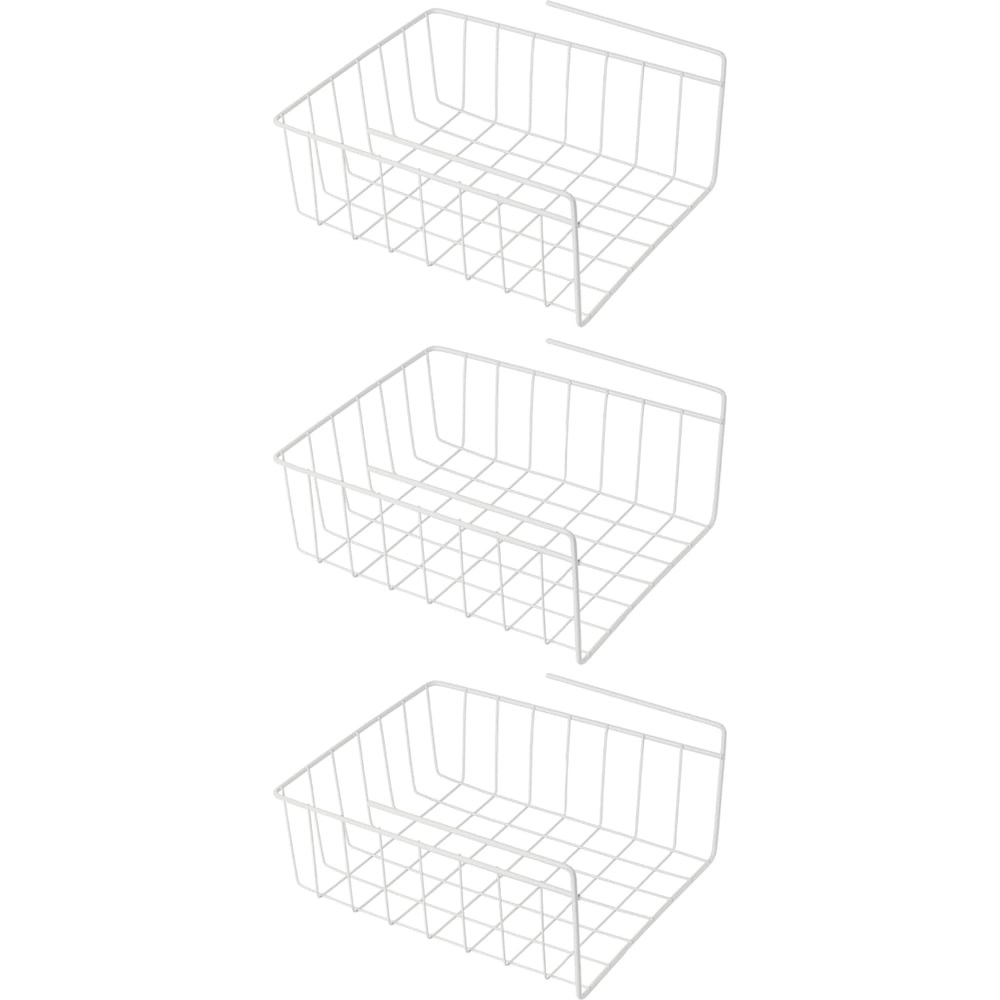 Подвесная узкая корзина Violet белая, 3 шт. N-712/3-06 - универсальный органайзер для хранения, дополнительная навесная полка в шкаф или на дверцу с креплением. Изделие можно использовать на кухне, в спальне, ванной, коридоре, гостиной, гардеробе, кладовке и в любом другом помещении. Универсальная корзина устанавливается в любой шкаф с полками, холодильник или вертикально навешивается на дверцу. Держатель рассчитан на толщину полки до 2 см. В корзинке можно хранить посуду, кухонные принадлежности, продукты, овощи, книги, постельное и нижнее белье, полотенца, вещи, бытовую химию и так далее. Такой рейлинг – незаменимая вещь в каждом доме, он поможет создать систему хранения, навести порядок и разложить все вещи по полочкам.