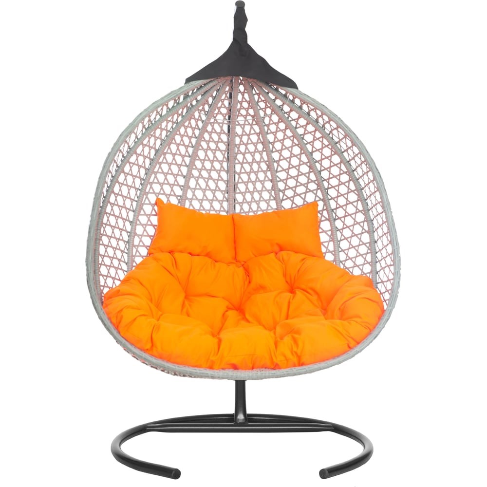 Подвесное двухместное кресло-кокон Лаура ФИДЖИ серый + каркас, подушка оранжевая FID