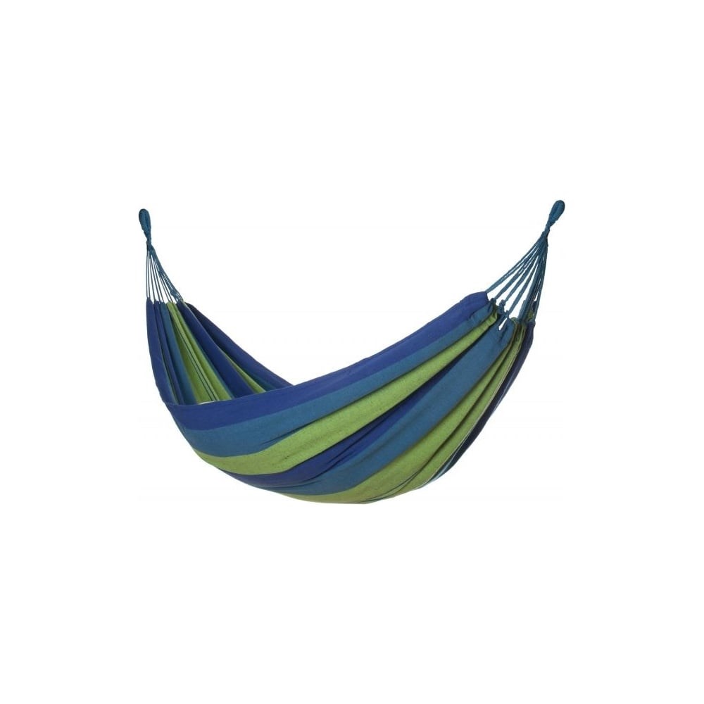Подвесной гамак Arizone Garden 200x100 см, синий 28-102101 подходит для времяпровождения на свежем воздухе. Изготовлен из прочной ткани, благодаря чему устойчив к износу. Благодаря плотному плетению выдерживает нагрузку до 120 кг. Гамак можно стирать при температуре не выше 40 С, поэтому он не требует сложного ухода. Условия хранения: Храните его в теплом, и сухом, хорошо защищённом от влаги помещении, сложив в чехол или полиэтиленовый пакет, при этом не завязывать его герметично, а оставить возможность для циркуляции воздуха. Можно воспользоваться средством от моли, упаковав его вместе с гамаком. Рекомендации по использованию: При подвешивании гамака всегда оставляйте некоторое расстояние от дна гамака до поверхности земли и не допускайте его соприкосновения с землей, иначе он может испачкаться и протереться о землю. Не перегружайте гамак весом, превышающим его рабочий. Если вес рассчитан на одного человека, отдыхайте в нём по очереди. Не используйте острые предметы (ножи, ножницы и другое) во время нахождения в гамаке т.к. они могут серьёзно повредить его полотно. Использование гамака маленькими детьми должно происходить только под присмотром взрослых во избежание травмоопасных ситуаций. Старайтесь не курить в гамаке, либо делайте это очень аккуратно, особенно это касается синтетических гамаков. Развешивайте гамак подальше от открытого огня и раскаленных предметов. Не оставляйте гамак на улице, когда вы не пользуетесь им долгое время - постоянное воздействие на него солнца и неблагоприятных погодных условий приведёт к потере насыщенной яркой расцветки гамака. Если на полотне гамака появились пятна или другие сильные загрязнения, перед стиркой их нужно аккуратно застирать, так чтобы место замывания не потеряло первоначальных красок.