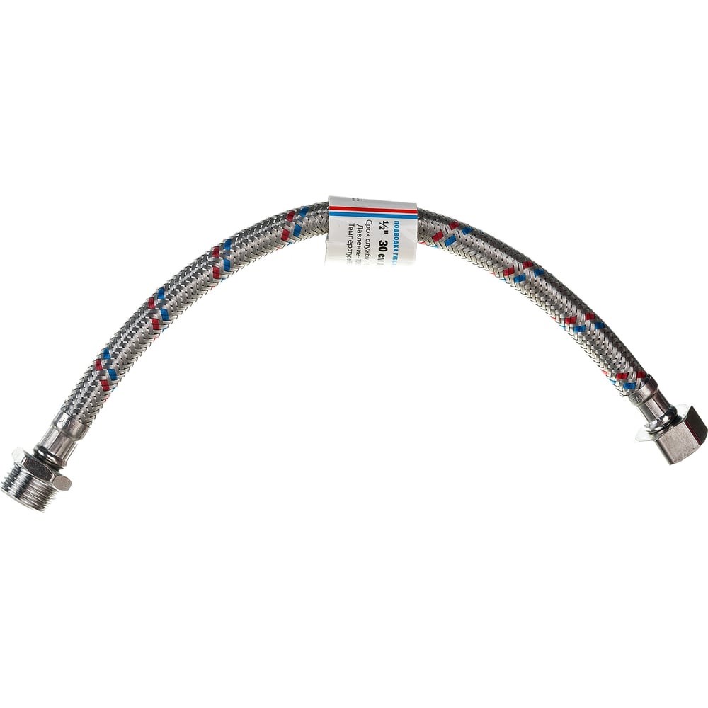 Подводка для воды ТР-сантехника, оплетка из нержавеющей стали, длина 30 см, внутренняя/наружная Гибкая подводка для воды необходима для подключения унитазов, смесителей, инсталляций для унитазов и душевых кабинок. Монтаж не требует специальных приспособлений и больших затрат времени, установленное оборудование служит надежно. Оплетка из нержавеющей стали – самая распространенная. Она способна обеспечить функционирование изделия в течение десяти лет при давлении до 10 атмосфер и температуре до 95º