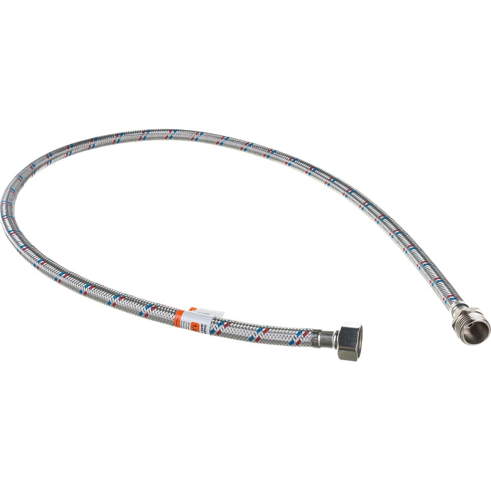 Подводка для воды 521379 предназначена для соединения сантехники с магистралью холодного или горячего водоснабжения. Подходит для металлополимерных, медных, стальных труб, для труб из сшитого полиэтилена. Применяется для подключения смесителей, стиральных машин и др. Изготовлена из качественных материалов, за счет чего отличается продолжительным сроком службы. Материал накидной гайки - нержавеющая сталь AISI 201, оплетка изготовлена из нержавеющей стали AISI 301, рукава - резина EPDM, оплетена нержавеющей проволокой AISI 301. Оснащена соединениями с внутренней и внешней резьбой. Внимание, изображение товара может отличаться от реального! Верные параметры указаны в технических характеристиках товара.