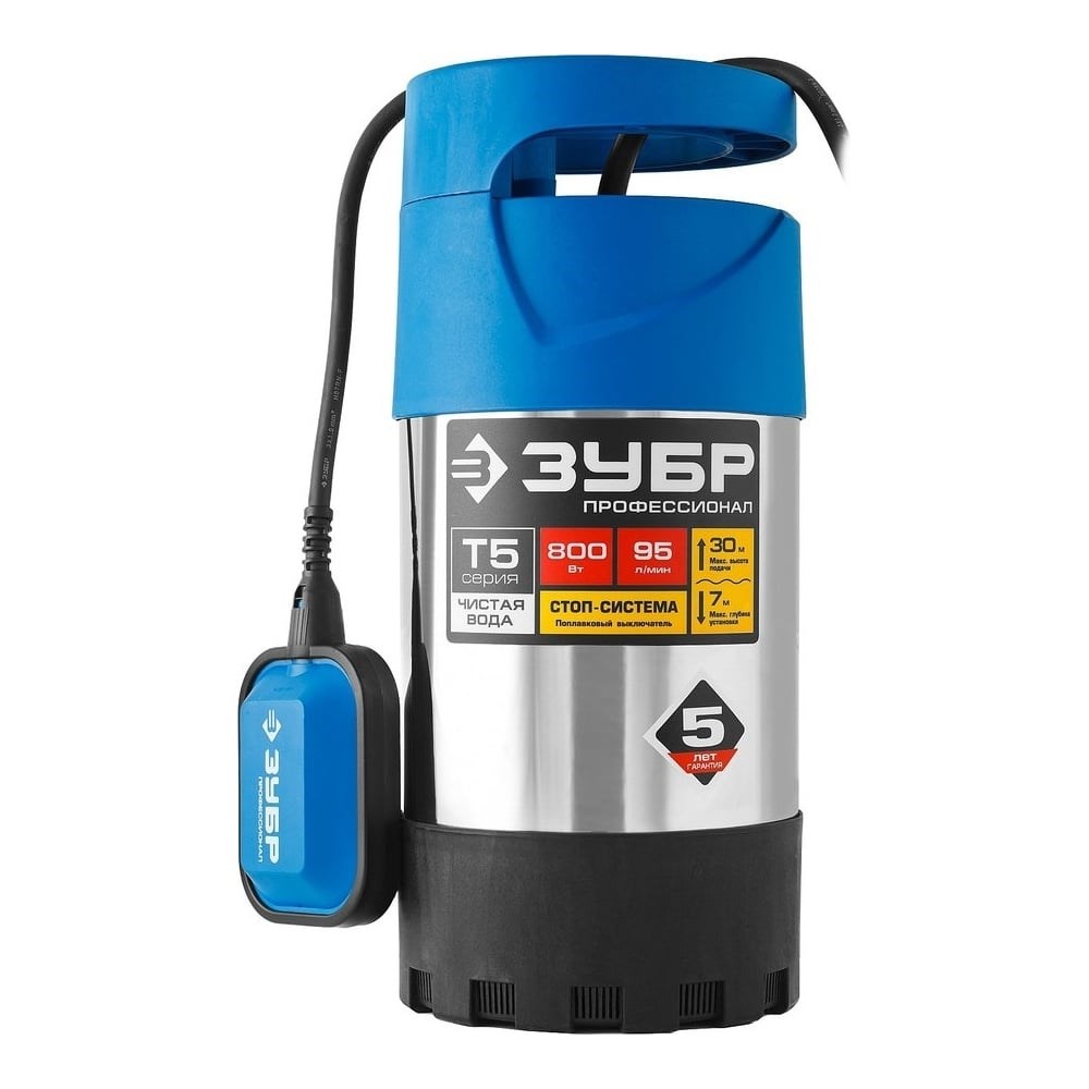 Погружной дренажный насос для чистой воды ЗУБР ПРОФЕССИОНАЛ Т5 НПЧ