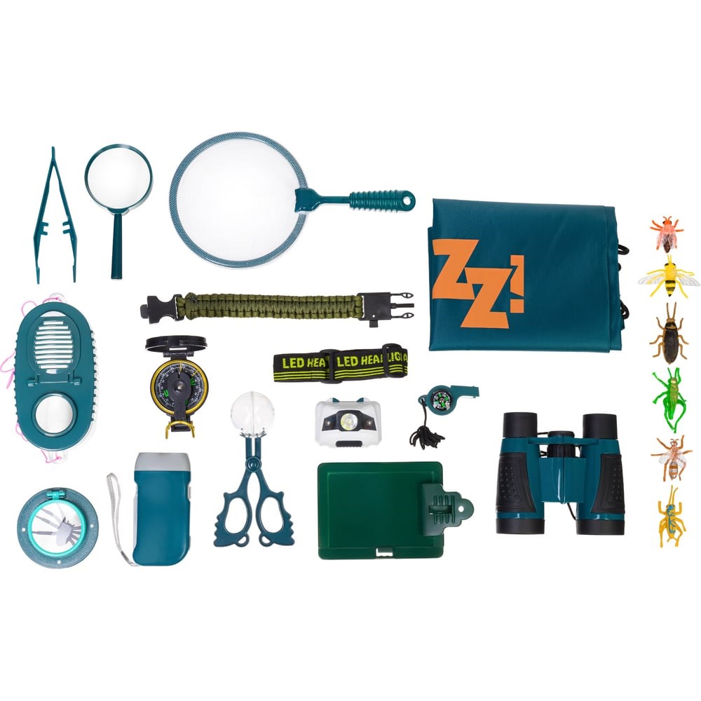 Походный набор Levenhuk LabZZ SK30 79675 – комплект приспособлений, который высоко оценят юные натуралисты и бойскауты. Аксессуары из набора просты в использовании и открывают доступ ко множеству возможностей. Сориентироваться на местности в походе, разбить лагерь и изучить окрестности даже в сумерках, подать сигналы и развести огонь – все это можно сделать, если у вас с собой есть походный набор. «Научная» часть комплекта содержит все необходимое для поимки и изучения насекомых. В многодневном походе пригодятся два светодиодных фонаря: налобный и динамо-фонарик, работающий без батареек. Для игр в выживальщиков отлично подойдет многофункциональный браслет-огниво. Также в наборе есть бинокль на призмах roof, компас и свисток. Что касается энтомологического снаряжения, это лупа-стакан, ручная ловушка, сачок и специальный пинцет. Есть здесь и универсальная ручная лупа. Делать маршрутные записи туриста и описывать интересные находки можно, используя блокнот-планшет. Приспособления набора компактно упаковываются в сумку-рюкзак с ярким рисунком и не обременяют в дороге. Для самых маленьких исследователей окружающего мира в набор добавлены игрушечные фигурки насекомых, которые помогут разобраться во многообразии мира членистоногих.