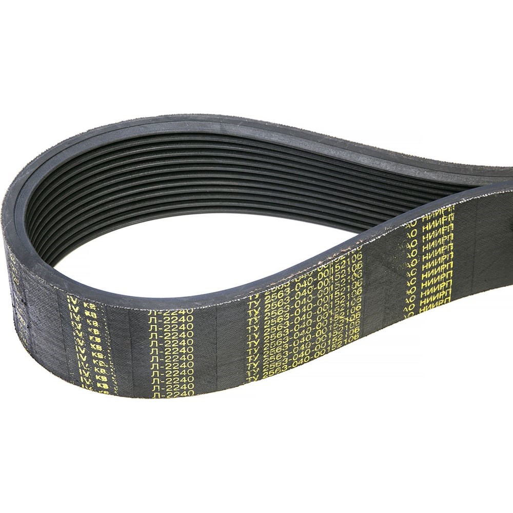 Профиль ремня: ЛЧисло рёбер ремня: 12Шаг между соседними клиньями: 4. 8 ммВысота профиля: 9. 75 ммДлина ремня: 2240 ммРаботоспособны при t: от -30°C до +60°CИзготовитель: ОАО "НИИРП", РоссияПродукция не подлежит обязательной сертификацииВес 1 шт.: 1, 344 кгМинимальная партия: 1 шт.Приводные ремни, передающие энергию при контакте нижнего основания ремня, снабжённого продольными рёбрами треугольного профиля с острой или усечённой вершиной, со шкивом, снабжённым соответствующими кольцевыми канавкамиБыли созданы в ходе работ по усовершенствованию элементов приводаОни характеризуются высокой эластичностью и отличной передачей мощностиКонструкция поликлиновых ремней состоит из плоской части и несущего слоя, которые представляют собой кордшнур из полиэфирных нитей, прорезиненную ткань, резину и клинообразные ребраУстойчивы к высоким нагрузкам, применяются в небольших приводах бытовой техники, отечественных и импортных автомобилях и техники, промышленном и сельскохозяйственном оборудованииРемни профилей К, Л, М имеют полный профиль с острым клином; ремни профилей РК, РН, PJ, PL имеют усечённый профильДля ремней профилей К, Л, М указывается расчётная длина ремня (Lp, Lw) - длина ремня по несущему слою (корду)Для ремней профилей РК, РН, PJ, PL указывается эффективная длина ремня (Le) - длина ремня по наружному диаметру измерительного шкива (приблизительно равна длине ремня по верхнему основанию La)