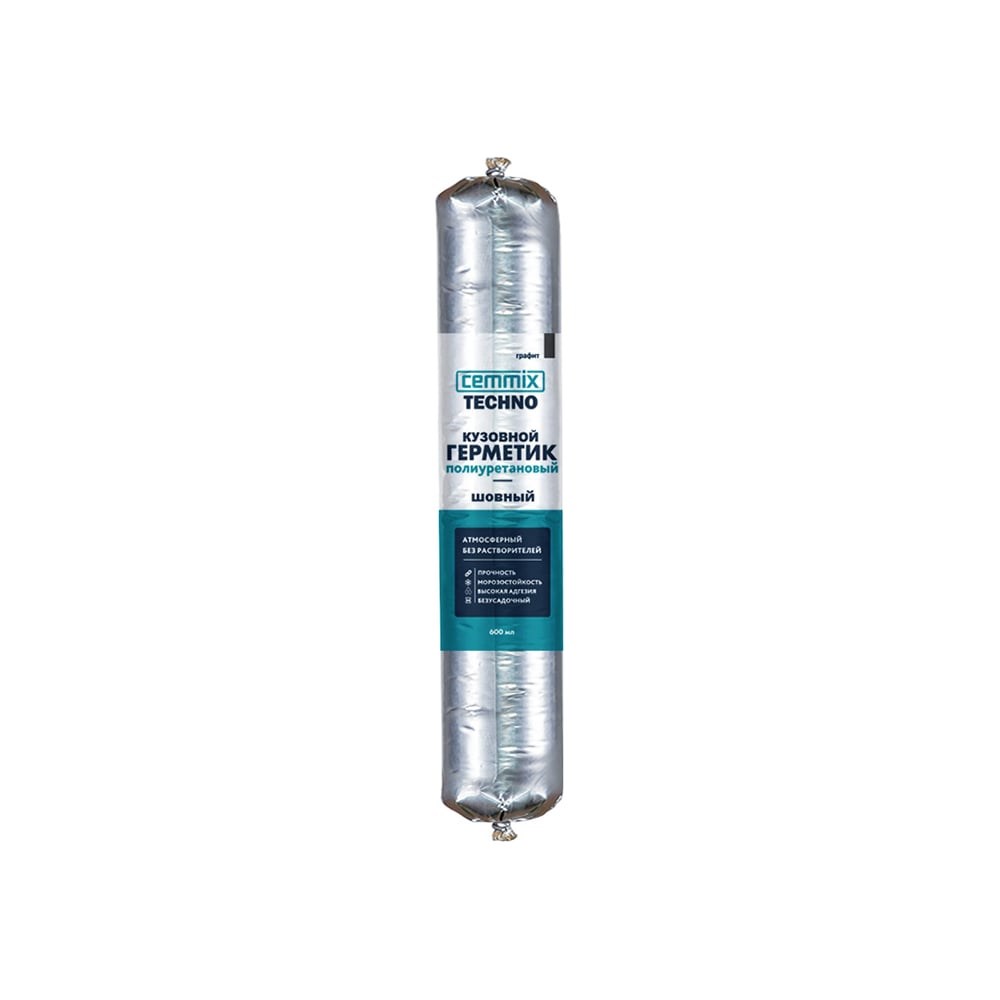 Полиуретановый герметик CEMMIX (кузовной; 600 мл; серый) G600G создан специально для обработки, уплотнения и герметизации сварных швов, соединений, заполнения пустот, обработки участков корпуса и деталей в автомобилях, фургонах, вагонах, механизмах, морских судах, конструкциях зданий и сооружений. Места применения - швы, сварные швы и соединения, полости, соединения на изделиях, в том числе подверженных вибрации, в механизмах, изделиях, сооружениях. Материалы нанесения: металл, пластик, бетон. Внутри и снаружи помещений. Имеет высокий предел прочности на сдвиг хорошую эластичность и очень низкую электропроводность. Герметик сертифицирован по ГОСТ 9.068-76 (стоек к воздействию влаги, морской воды, умеренно агрессивных сред). Полное высыхание до 24 часов. После полного высыхания не дает усадку. После полной полимеризации герметик может быть окрашен.