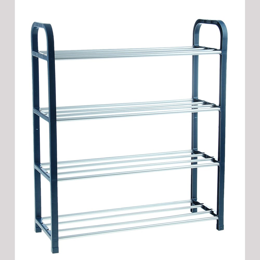 Полка для обуви Доляна 4 яруса 50х19х60 см цвет синий 133671 имеет пластиковый каркас и металлические прутья c антикоррозийным полимерным покрытием. Они обеспечивают прочность и устойчивость. Металл дополнительно окрашен. Краска устойчива к царапинам - изделие дольше сохранит свой первозданный вид. Приспособление является не только местом расположения повседневных вещей, но и мебелью, где можно хранить обувь в межсезонье. Расстояние между полками - 13 см.
